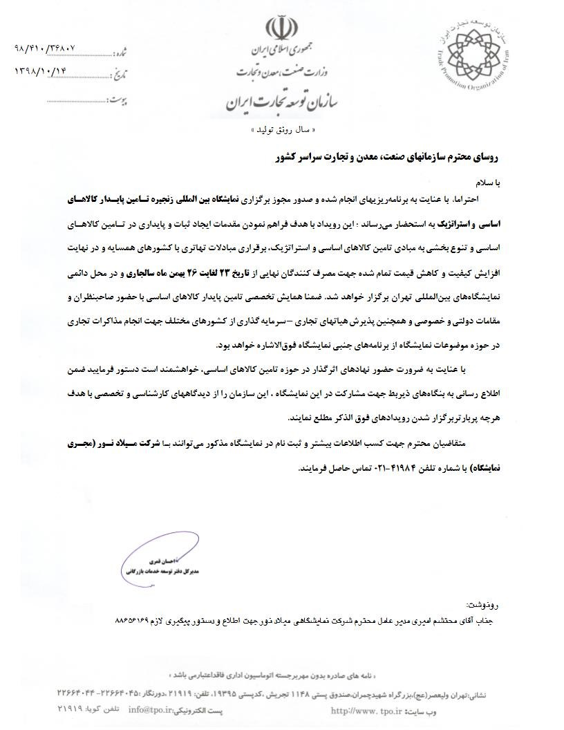 برگزاری نمایشگاه بین اللمللی زنجیره تامین پایدار کالا های اساسی و استراتژیک