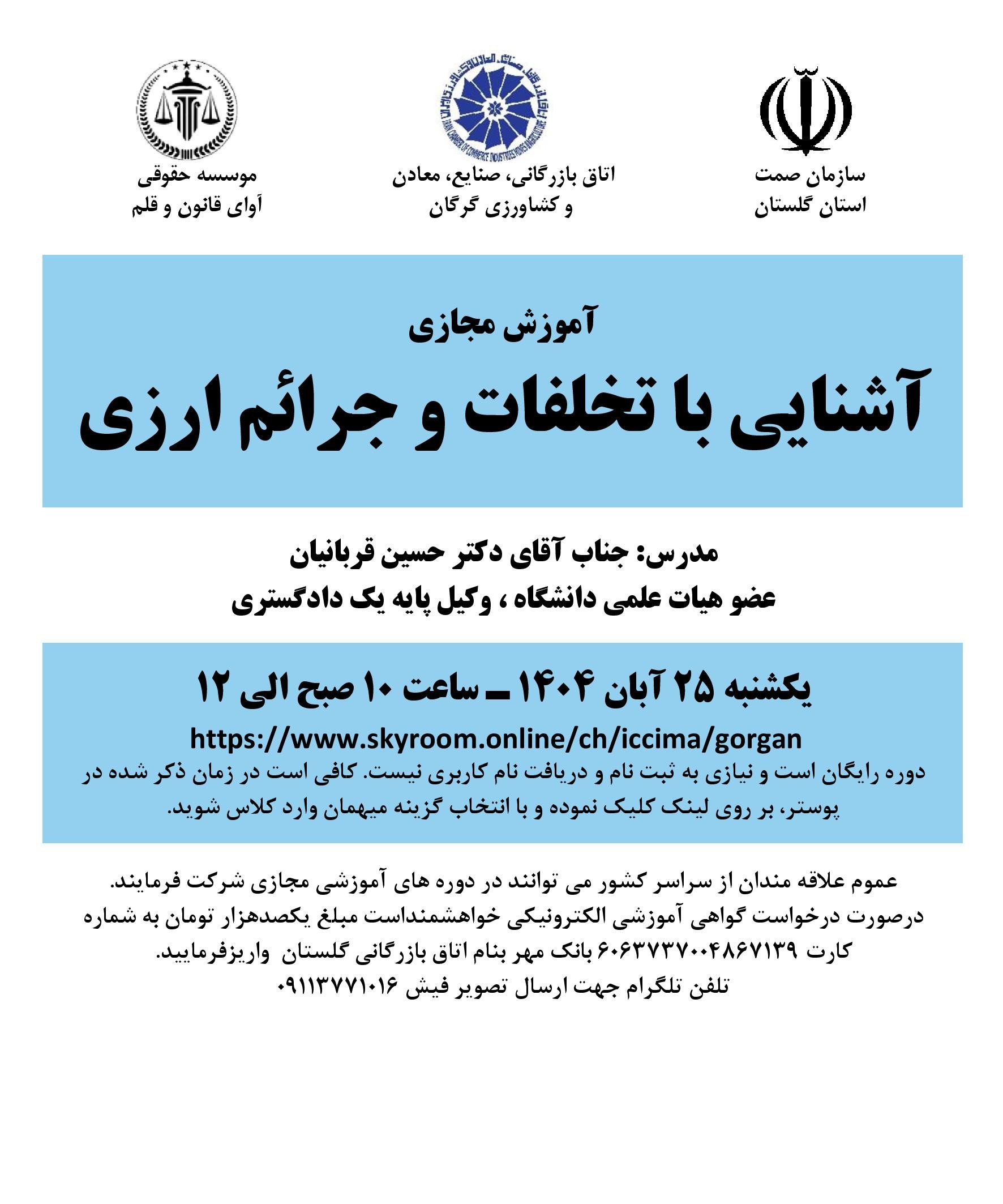 آموزش مجازی نکات حقوقی رفع تعهدات ارزی با تدریس دکتر حسین قربانیان و با حضور ۳۰۰ نفر در ۲۰ مهر ۱۴۰۴ در اتاق گرگان برگزار گردید. @emcgolestan