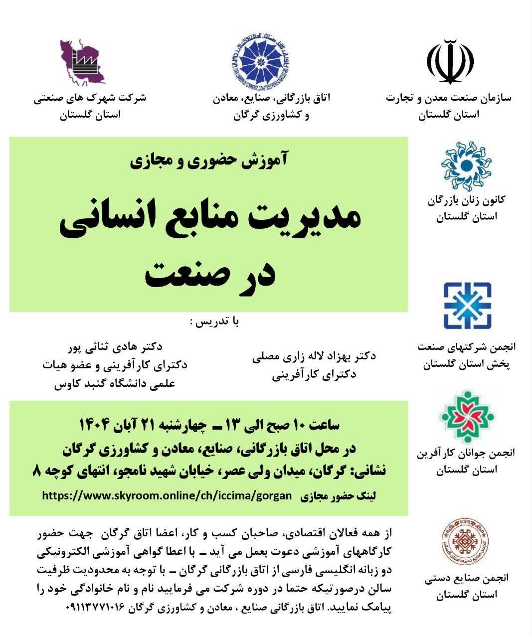 آموزش مدیریت منابع انسانی در صنعت با تدریس جناب آقای دکتر لاله زاری و دکتر ثنایی پور و با حضور ۱۱۵ نفر همزمان حضوری و مجازی در اتاق گرگان در تاریخ ۲۱ آبان ۱۴۰۴ برگزار گردید. @emcgolestan