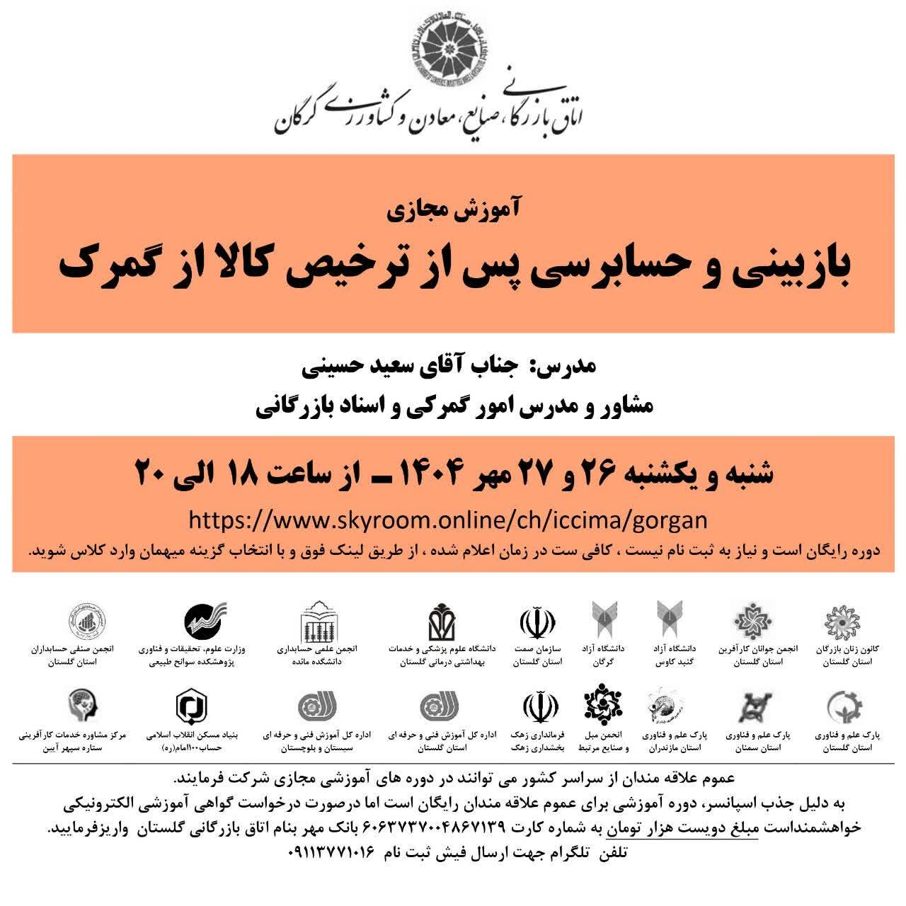 آموزش تحلیل مصادیق قاچاق کالا و نحوه رسیدگی به اختلافات گمرکی با تدریس دکتر رضا گلی در 25و27 و29 فروردین1403 برگزار گردید آموزش اتاق بازرگانی گرگان - زندگی بر مدار یادگیری - آموزش سبز