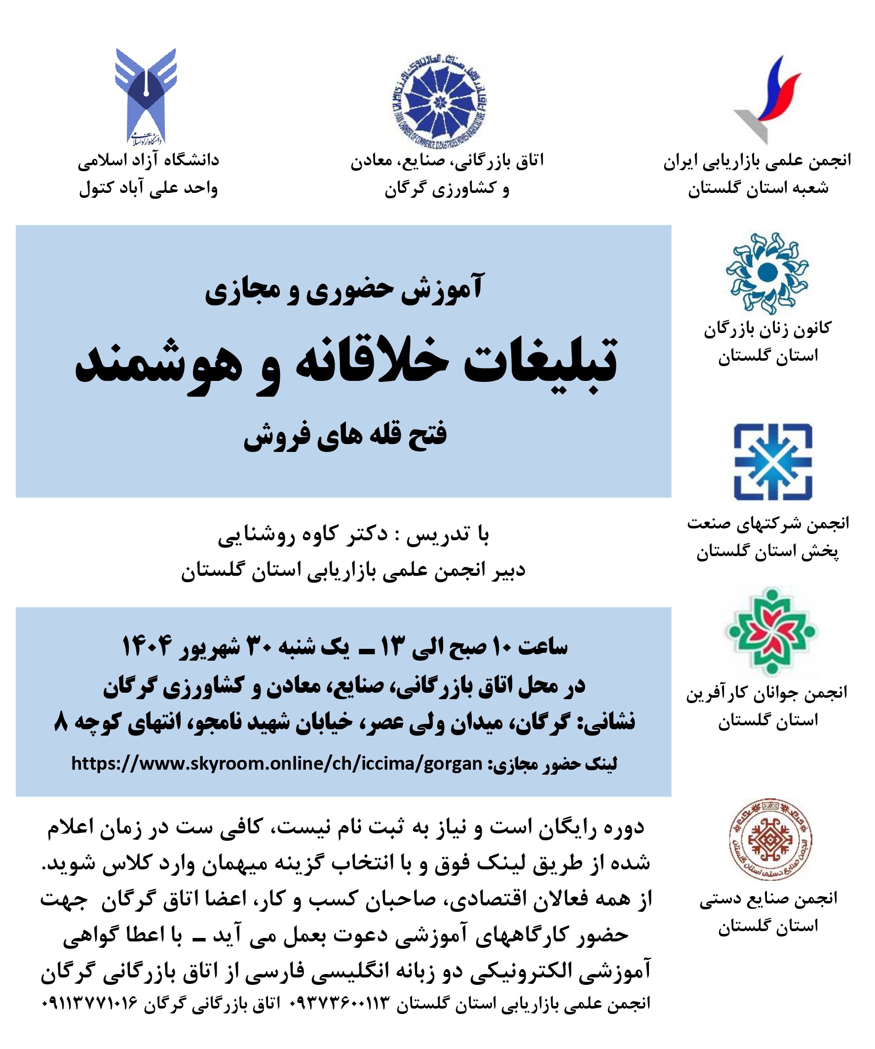 آموزش مدیریت تبلیغات هوشمندانه با تدریس دکتر کاوه روشنایی دبیر محترم انجمن بازاریابی استان گلستان و با حضور ۱۹۵ نفر همزمان حضوری و مجازی در ۳۰ شهریور ۱۴۰۴ در اتاق گرگان برگزار گردید. این دوره با همکاری مشترک اتاق گرگان و انجمن بازاریابی استان گلستان برنامه ریزی و برگزار گردید. @emcgolestan #green_training #رشد_بر_مدار_شرافتDQ #زندگی_بر_مدار_یادگیری #آموزش_سبز