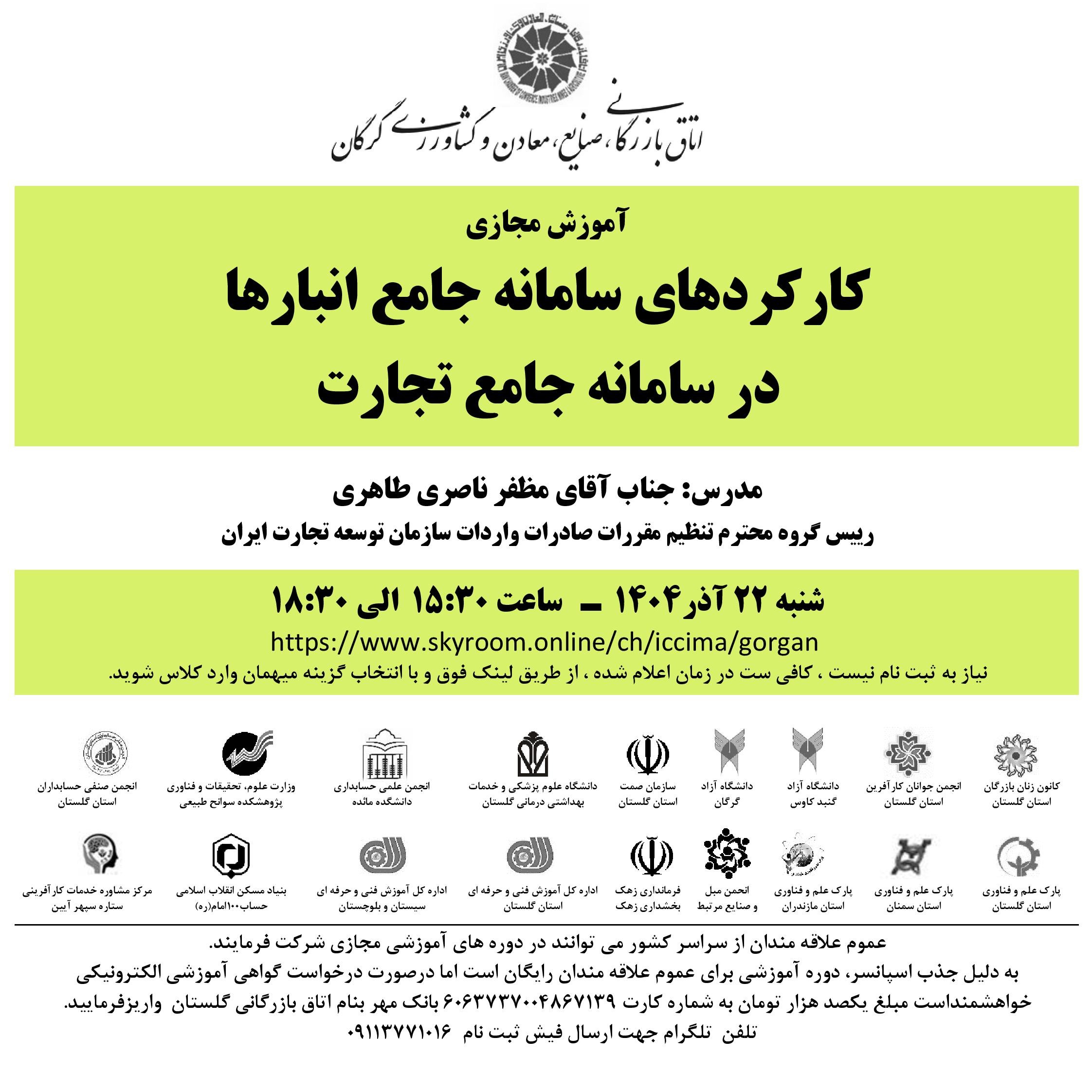 آموزش مجازی کارکردهای سامانه جامع انبارها در سامانه جامع تجارت با تدریس دکتر مظفر ناصری طاهری رییس گروه محترم تنظیم مقررات صادرات واردات سازمان توسعه تجارت ایران و با حضور ۲۵۵ نفر در ۲۲ آذر۱۴۰۴ در اتاق گرگان برگزار گردید. @emcgolestan #green_training #زندگی_بر_مدار_یادگیری #رشد_بر_مدار_شرافتDQ #آموزش_سبز