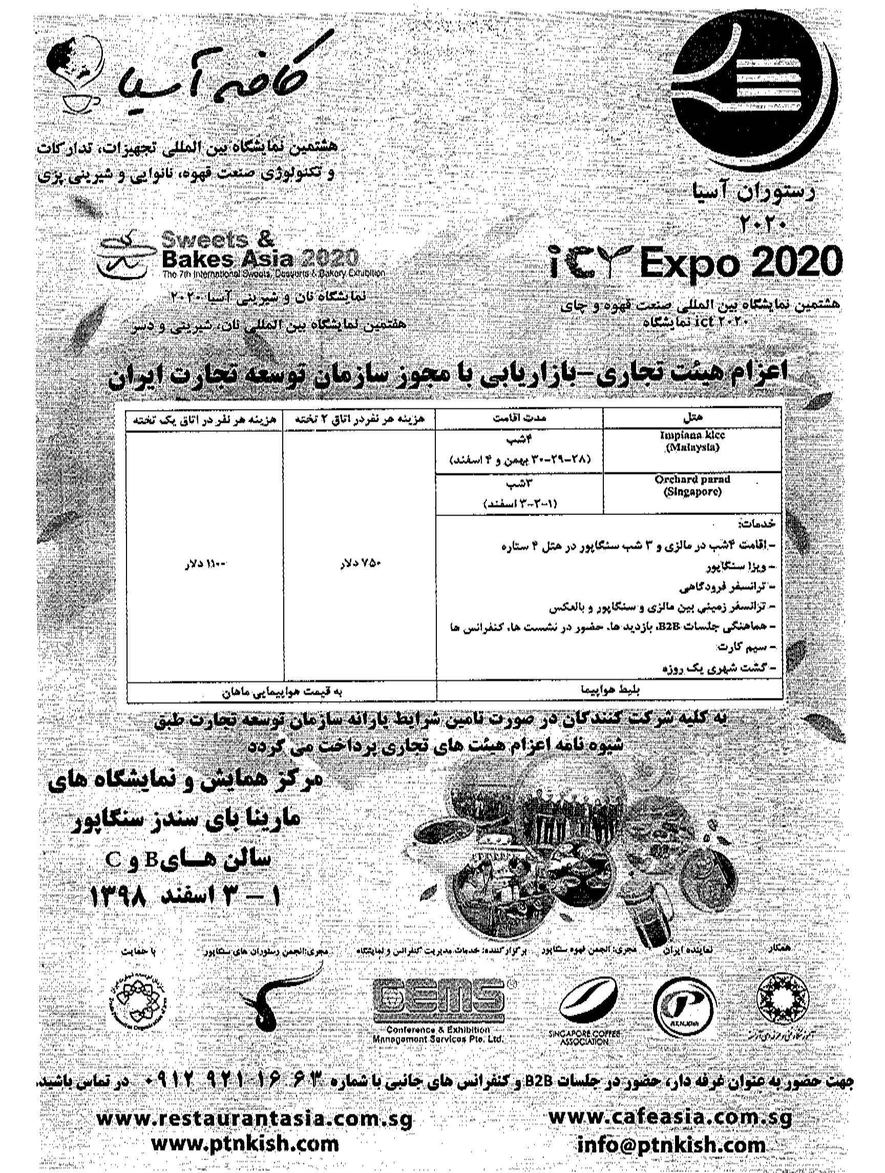 اعزام هیات تجاری به نمابشگاه صنایع غذایی رستوران کافی شاپ سنگاپور