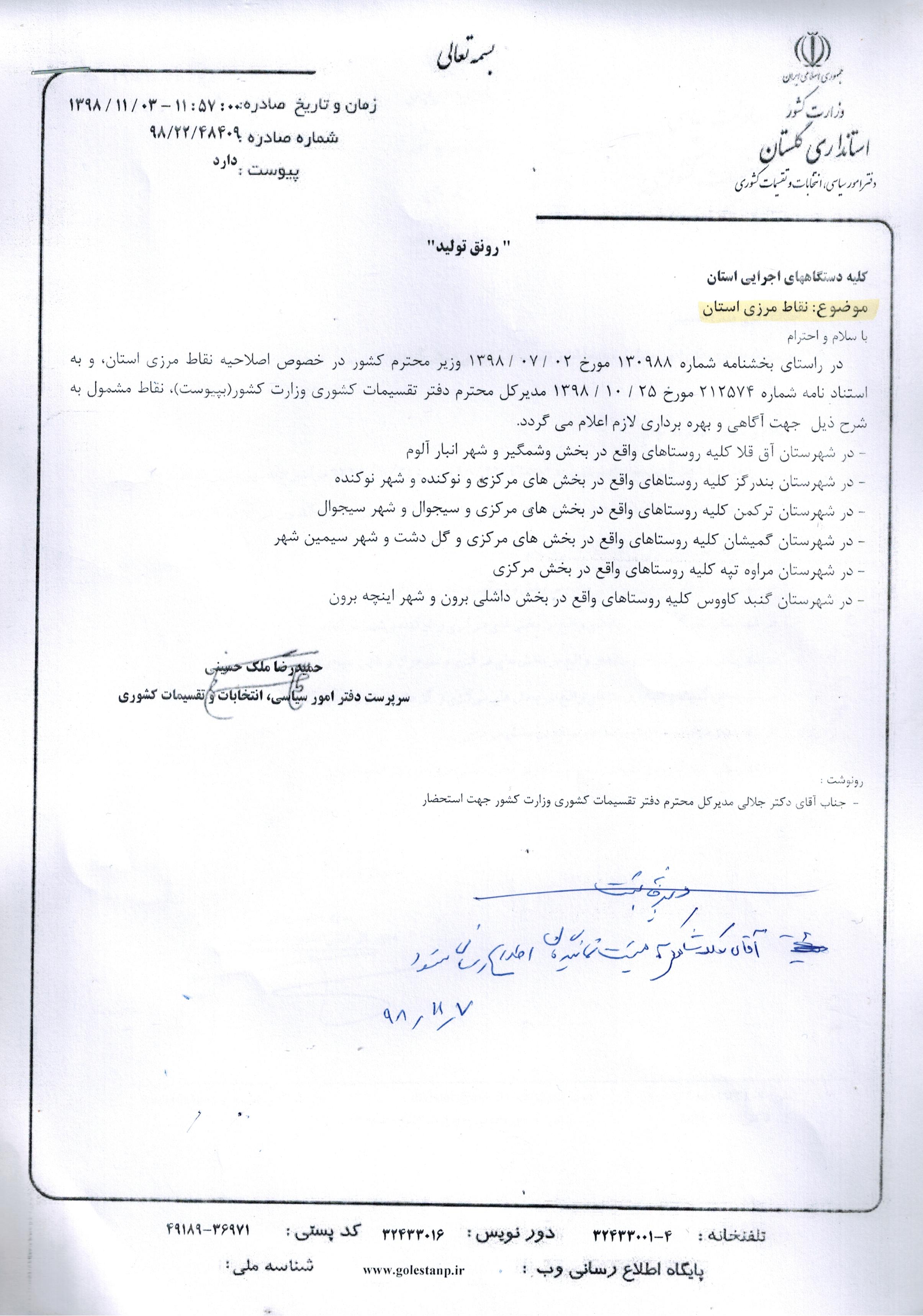 نقاط مرزی استان از آقای ملک حسینی امور سیاسی انتخابات و تقسیمات کشوری استانداری