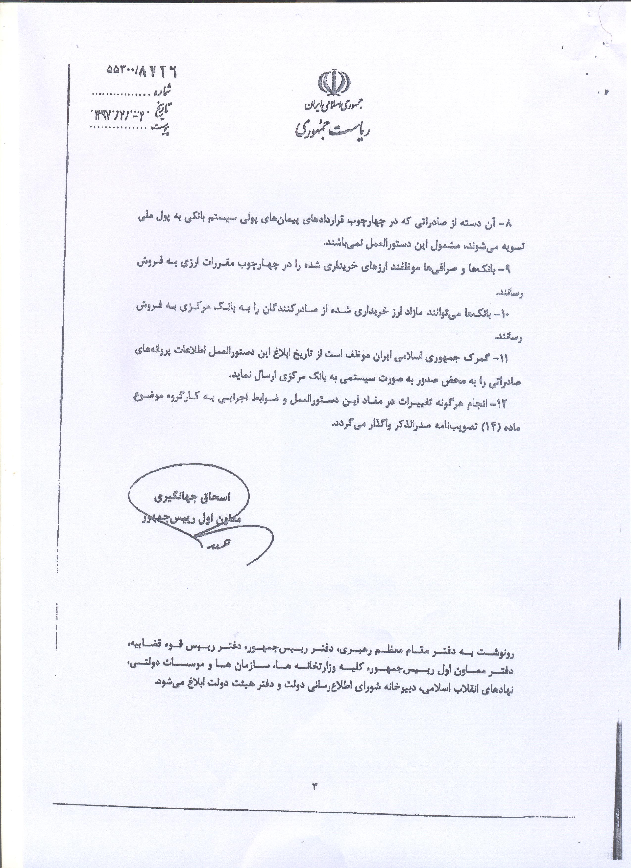 اتاق بازرگانی گرگان در نظر دارد با همفکری فعالان اقتصادی نسبت به بروز رسانی ارزش کالاهای صادراتی اقدام نماید، لذا از عموم صاحب نظران درخواست می شود با توجه به مفاد دستور العمل وضوابط اجرایی ابلاغی توسط معاونت اول ریاست جمهوری به شماره  8726/55300 مورخ 1397/2/2 (به پیوست) نقطه نظرات خود را به دبیرخانه اتاق ارسال نمایند تا در جلسه مشورتی که به همین منظور در روزهای آتی تشکیل می شود، مورد طرح و بررسی قرار گیرد.