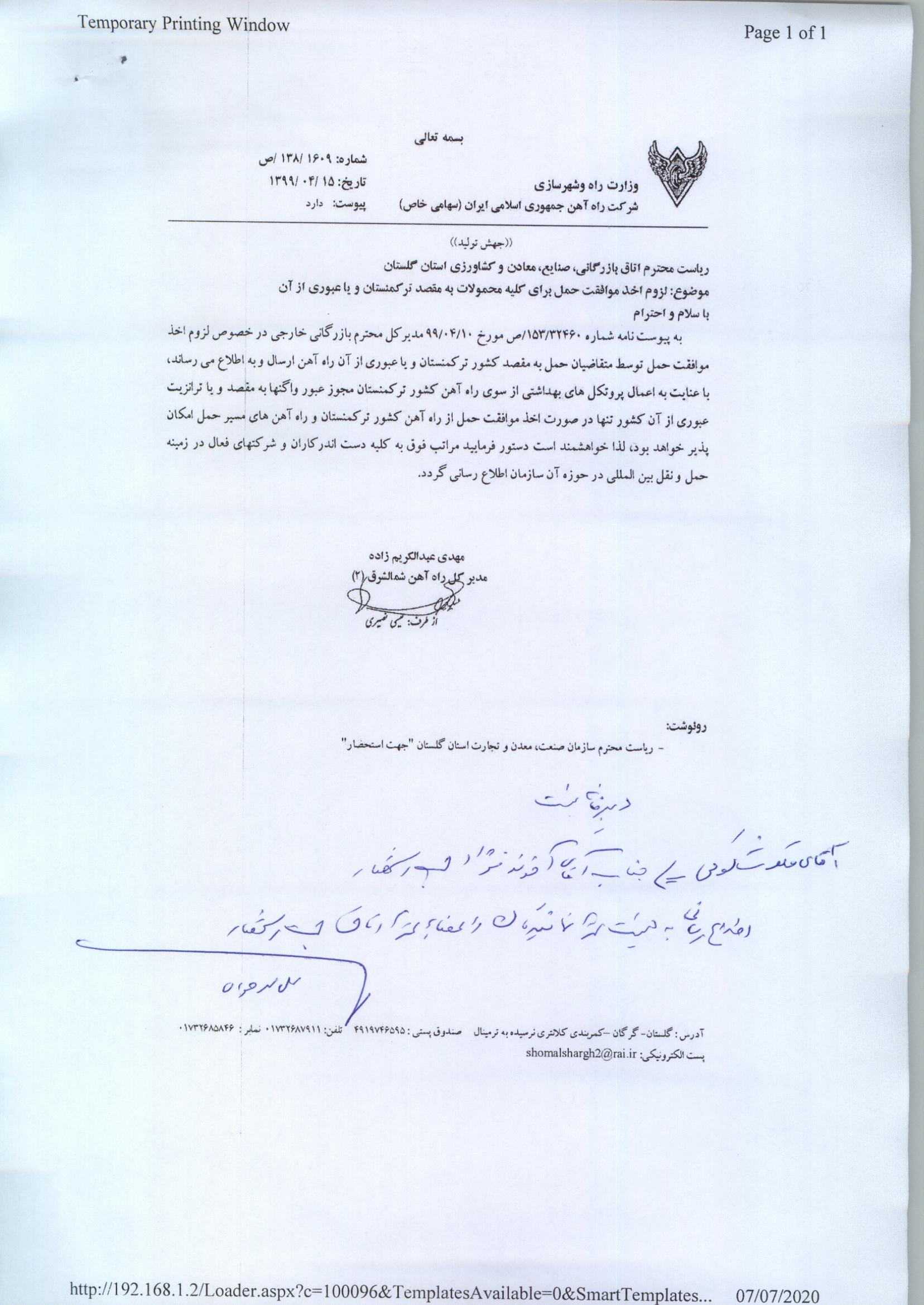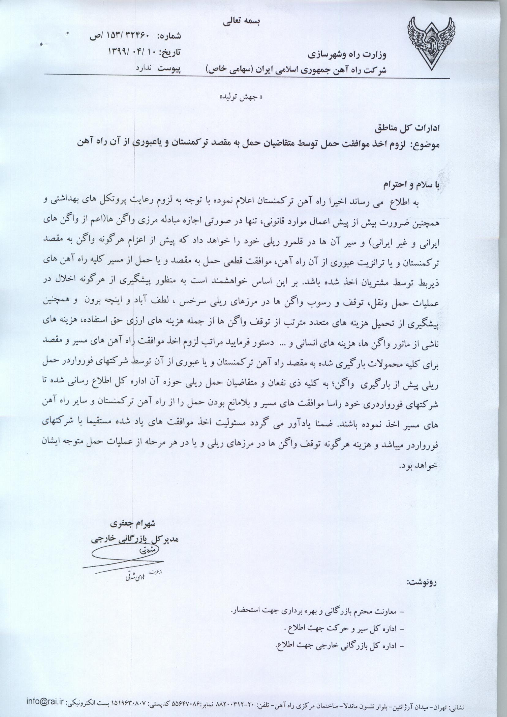لزوم اخذ موافقت حمل برای کلیه محصولات به ترکمنستان و یا عبوری آن